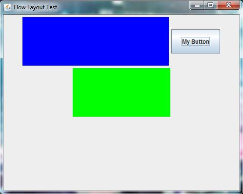 In this example we reimplement addItem which is a pure virtual function. Create a frame and set its layout to FlowLayout. Create two panels and add them to the frame.